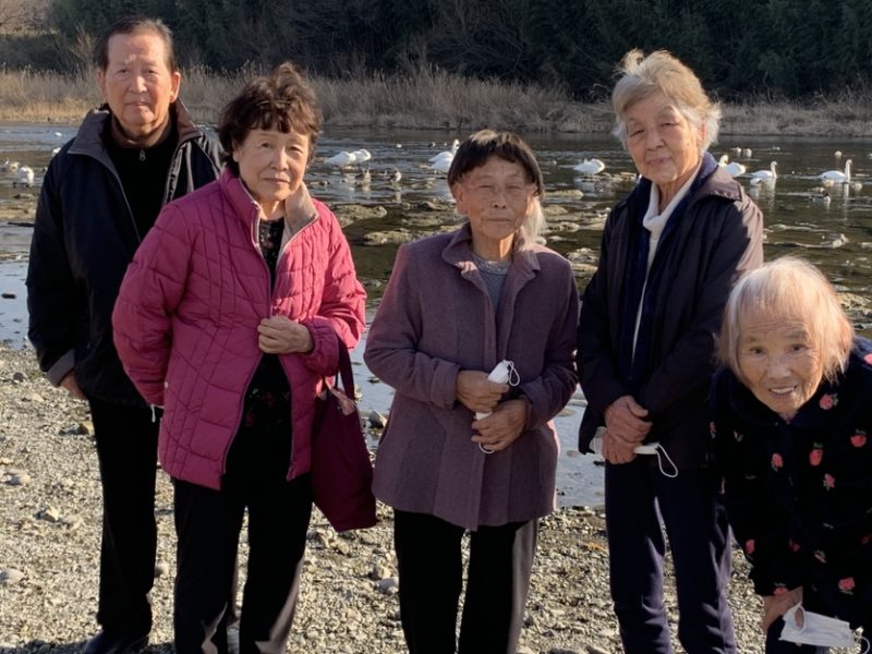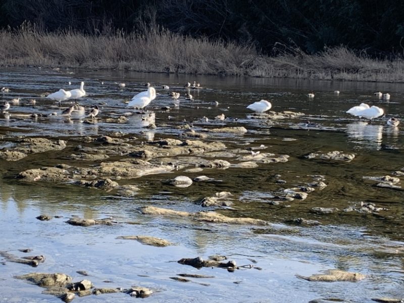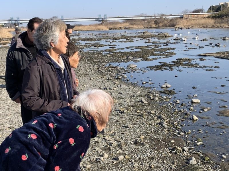 お天気もよく暖かい日に、歩行訓練を兼ねて利用者の皆さんと冬の風物荒川の白鳥を観に行って来ました!!