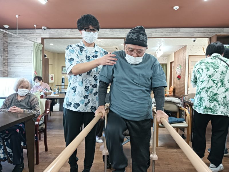 職員がそばで見守りながら、無理のない範囲でチャレンジ。