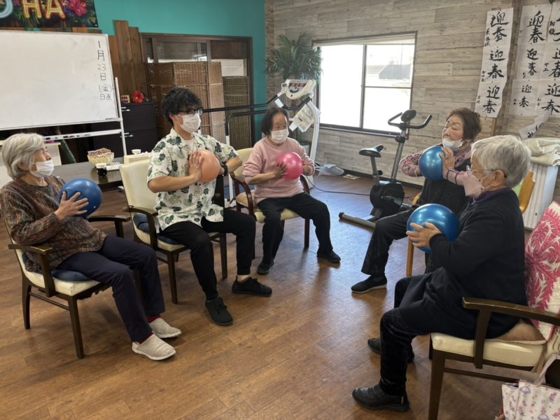 リゾート風の雰囲気の中で機能訓練やレクリエーションを行っています♪