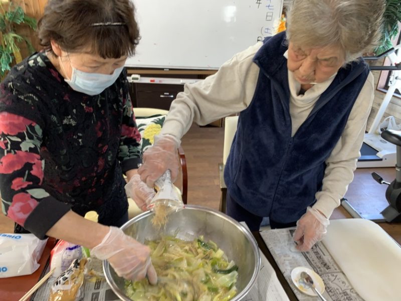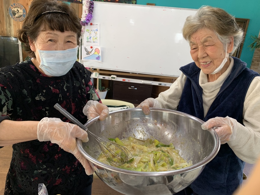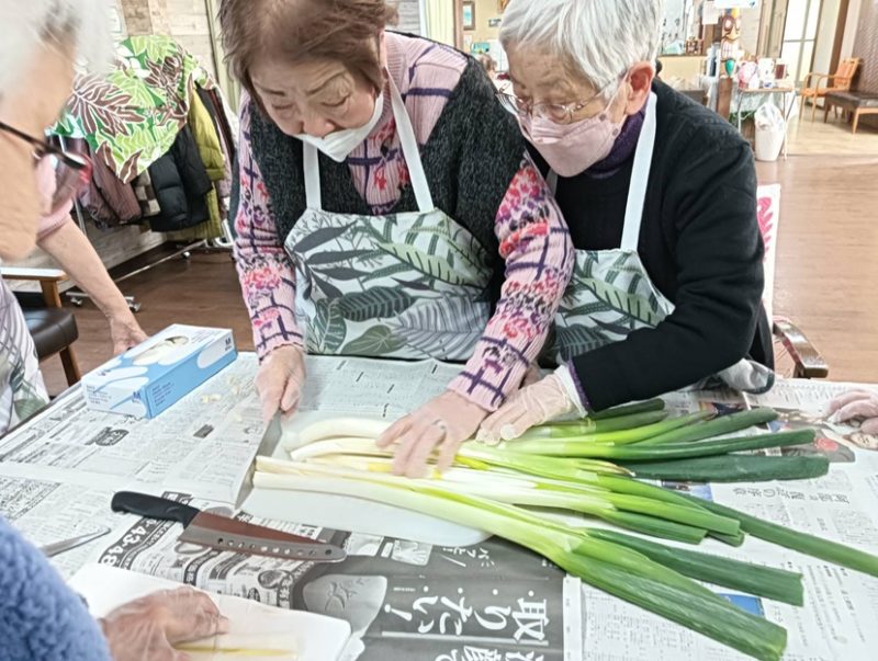 本場のネギ農家さんから頂いた美味しい「深谷ネギ」を使って利用者様とネギぬたを作りました