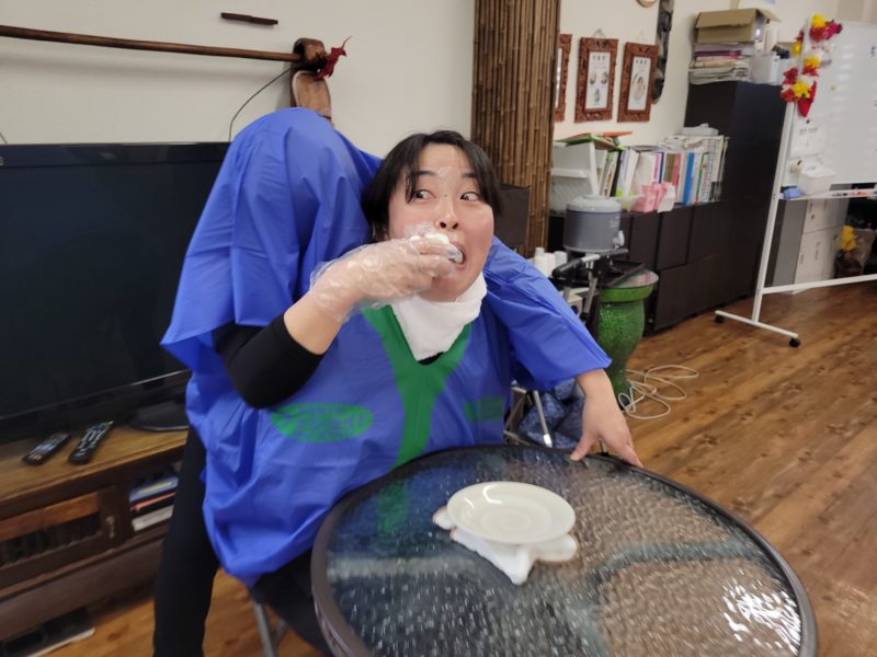 大きな口を開けて美味しそうなケーキを待ち構えるとあれ⁈「もっと下よー‼」